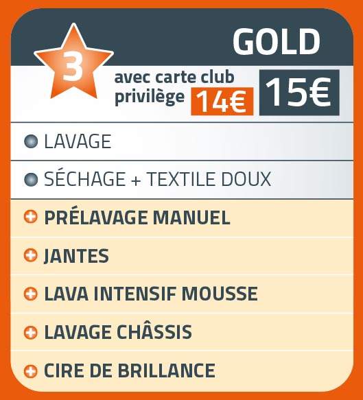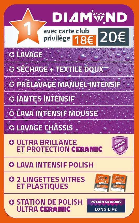 Avec la carte club privilège économisez 1€ à 2€ à chaque lavage sur les programmes Diamond, Platinum ou Gold et obtenez des bonus à chaque recharge.